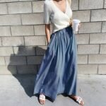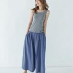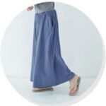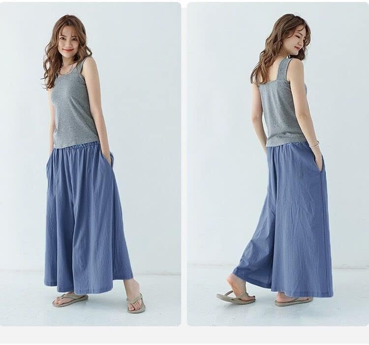 بنطلون اساكوسا من كيه كايرديا بطول وتصميم مشابه للتنورة. بنطلون لباس موحد طويل صيفي للسيدات بتصميم كاجوال مع جيوب للنساء