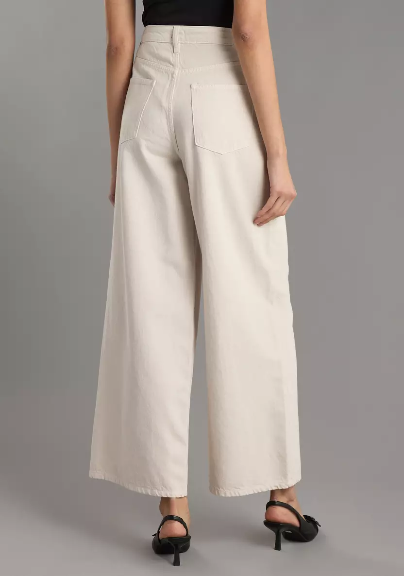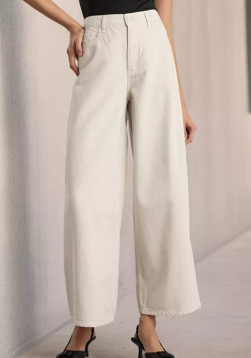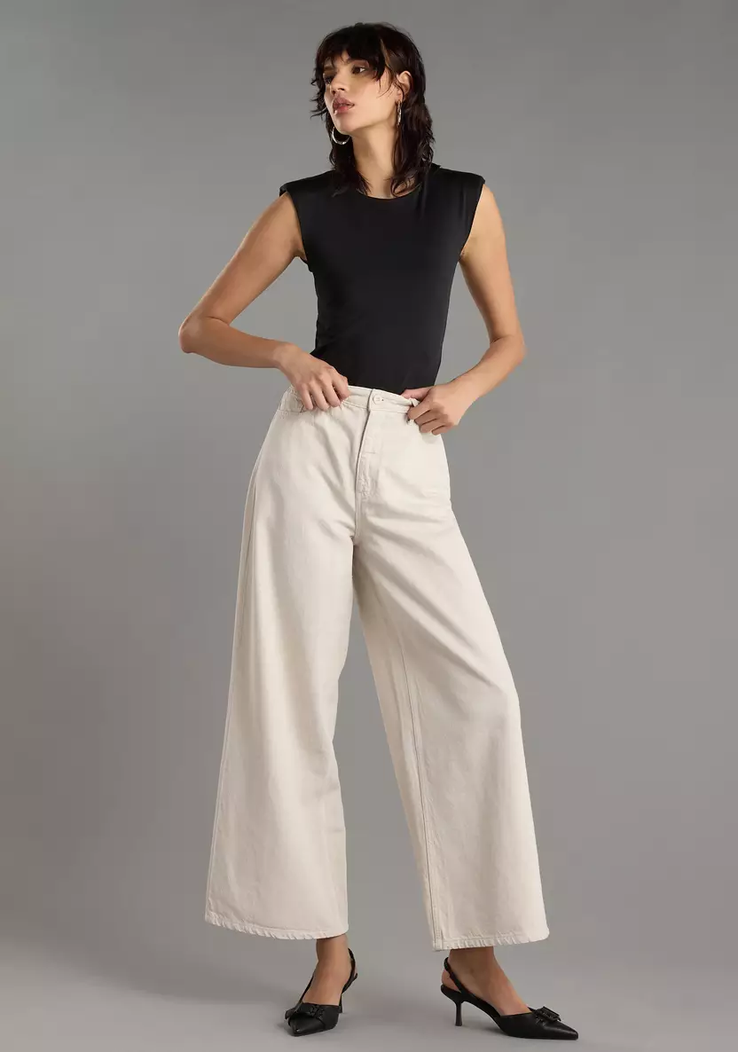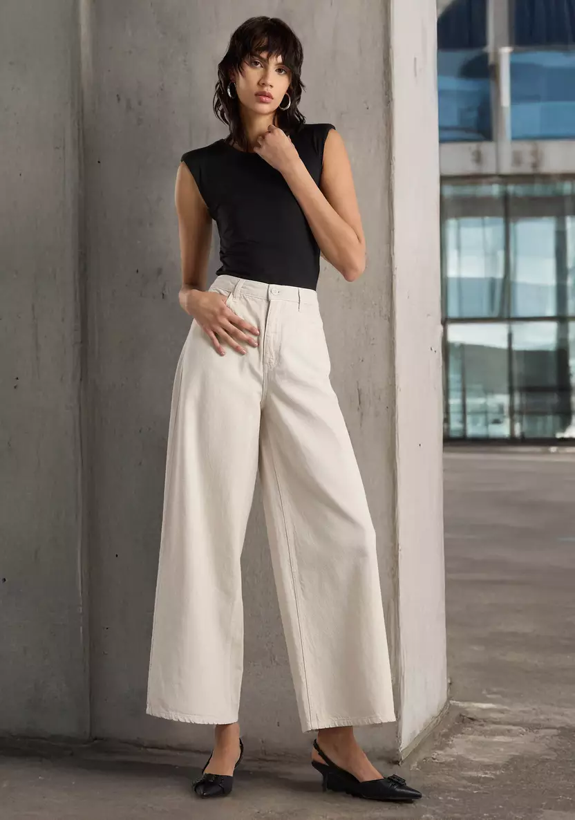 بنطلون جينز بقصّة واسعة سادة واسع الساقين وخصر مرتفع