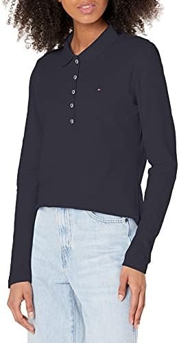 تي شيرت بولو بتصميم ذو أكمام طويلة للنساء من تومي هيلفيجر، لون سكاي كابتن، مقاس S