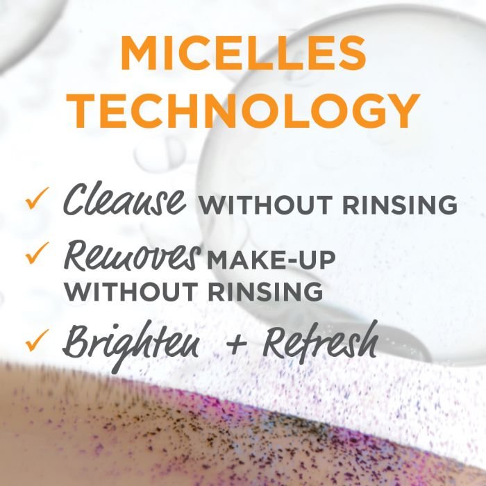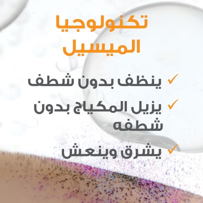 - غنيّ بجزيئات الميسيل، الفيتامين سي ومزيل للمكياج عالي الفعاليّة، يزيل التلوث، الاوساخ وكل أنواع الماكياج ويعيد للبشرة اشراقتها في خطوة واحدة.