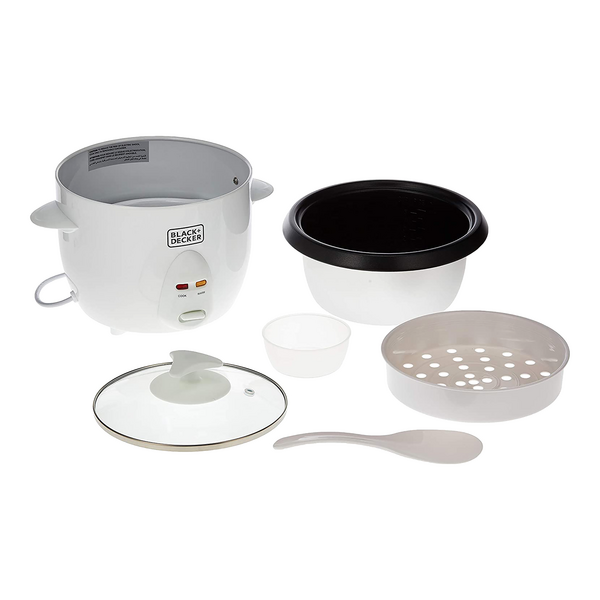 جهاز طهي الأرز الأوتوماتيكي من بلاك + ديكر بقدرة 400 واط، غير لاصق، أبيض، بسعة 1 لتر