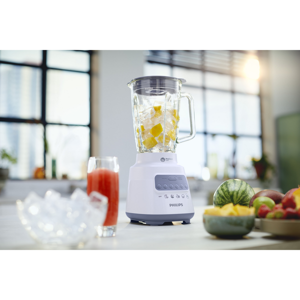 تمتع بتحضير مشروباتك المفضلة بسهولة مع خلاط فيليبس HR2222/01، الذي يتميز بقدرة 700 واط وتصميم عصري بهلوان أبيض وأرجواني. يحتوي على تقنية ProBlend Crush لخلط مثالي وزر لتحطيم الثلج، مما يجعله مثاليًا لتحضير السموزي والعصائر. يوفر 5 سرعات مختلفة لضبط الخلط الخاص بك، بالإضافة إلى نظام حماية من ارتفاع حرارة المحرك وزر لتنظيف سريع.