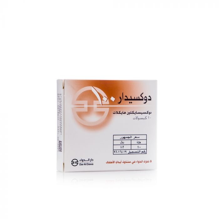 - دوكسيدار 100 مجم، مضاد حيوي، يخفف من العدوى البكتيرية – 10 كبسولات