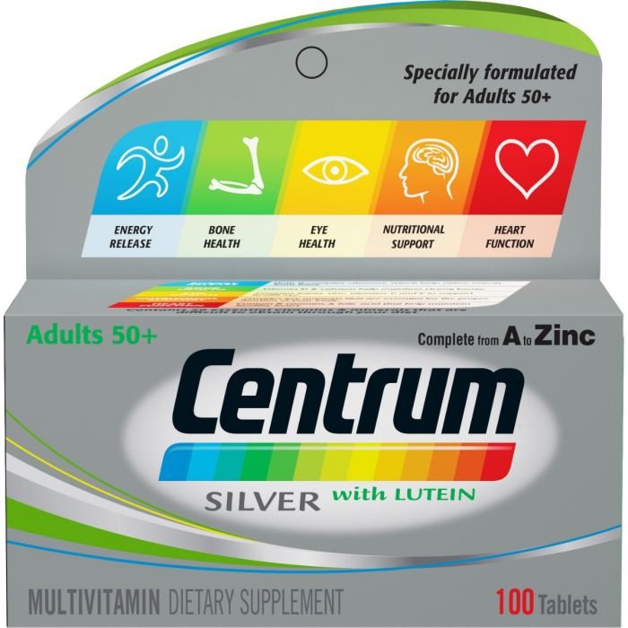 - سنترم الفضي مع اللوتين، أقراص، متعددة الفيتامينات والمعادن – 100 قرص
