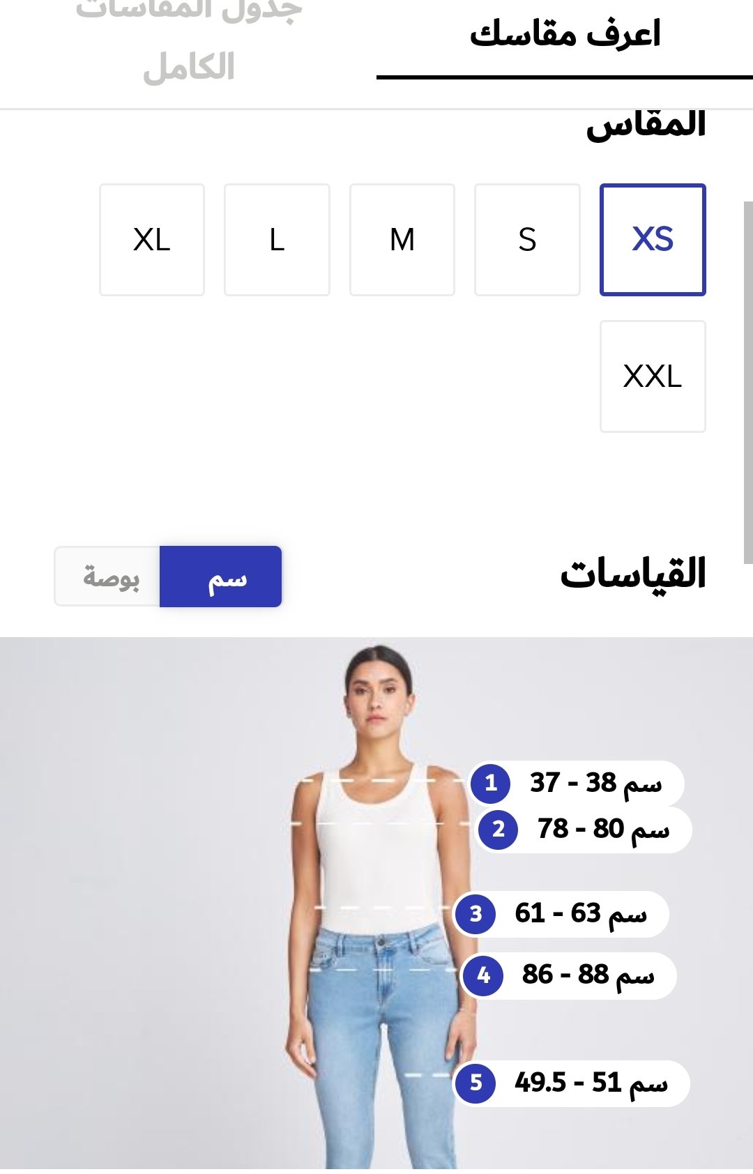 قياسات العارض/ العارضة : محيط الصدر 86 سم، الخصر 62 سم، الورك 94 سم، الارتفاع 175 سم
