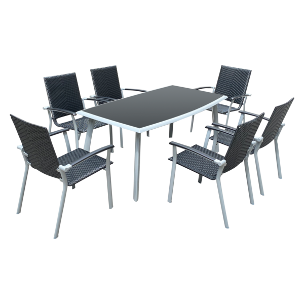 ارتقِ بتجربة تناول الطعام في الهواء الطلق مع طقم الطعام الخارجي من ليفينغ أكسنتس. يتميز هذا الطقم الأنيق والمكون من 7 قطع بتصميمه المتين والمصنوع من الألمنيوم والصناعات اليدوية، مما يضفي لمسة فاخرة على حديقتك أو فناءك. يتمتع الطقم بمائدة مستطيلة كبيرة مع سطح زجاجي مقسّى باللون الأسود، مما يوفر مساحات واسعة للعائلة والأصدقاء. بتصميمه الأنيق باللون الرمادي، يضيف هذا الطقم لمسة من الفخامة إلى أي مساحة خارجية.