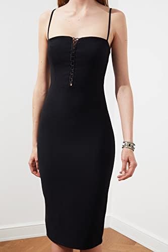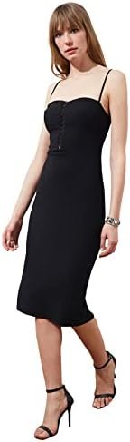 التصميم: إنه فستان متوسط الطول بقبة مربعة للنساء. يتميز هذا الفستان ذو النسيج المحبوك بتصميم ضيق ونمط بودي كون سادة.