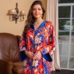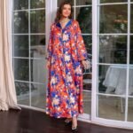 تصميم رائع: ارتقِ بخزانة ملابسك مع هذا الفستان الطويل المذهل ذو الأكمام الطويلة الذي يتميز بطبعات أرابيسك المعقدة، مما يضيف جوًا من الأناقة والرقي إلى مظهرك.