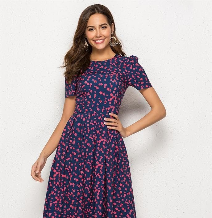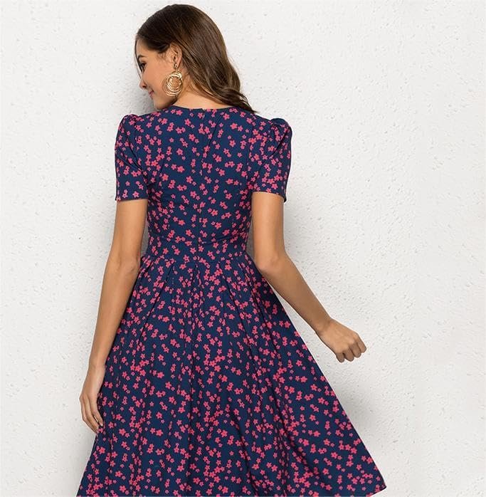 نقدم لك فستان صيفي متوسط الطول للنساء بنمط زهور، وهو فستان سهرة مستوحى من الطراز القديم ينضح بالأناقة والسحر.