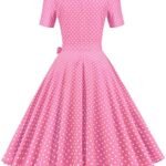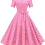 فساتين كلاسيكية بنمط عتيق بطول الركبة للنساء لعيد الحب، فستان مطرز باللون الوردي للنساء. تصميم جميل، نصف 3 4 أكمام، نمط وردة حمراء مطرزة جميلة، كشكشة مطوية ونمط ملائم نحيف، ساحر وجذاب للغاية. فستان شاي عتيق من الستينيات مزين بالزهور وحديقة الربيع والحفلات الراقصة وحفلات الكوكتيل للنساء، زي مثالي لزوجتك وعائلتك وحبيبتك وأصدقائك.