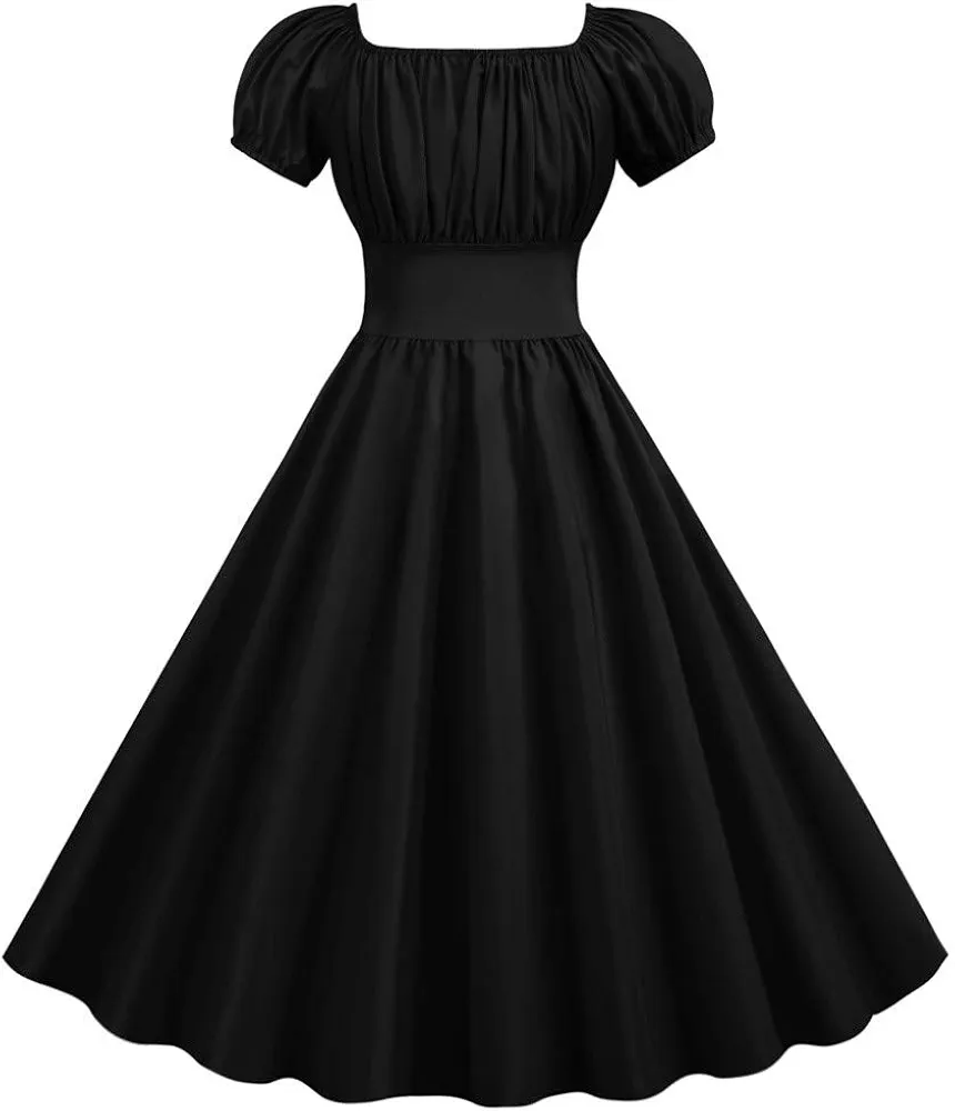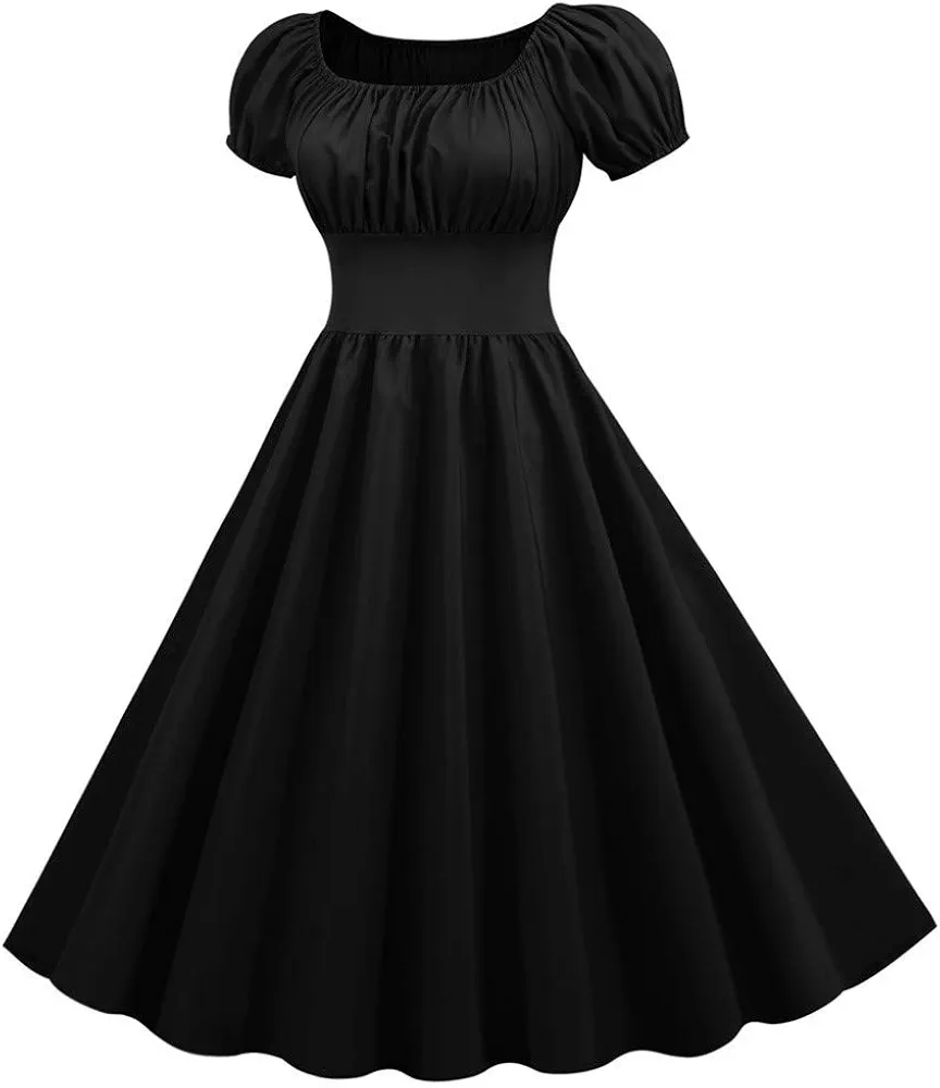 فستان صيفي قصير للحفلات باكمام الستينيات فينتاج سوينغ للنساء برقبة ريترو من الخمسينيات فساتين نسائية فضفاضة