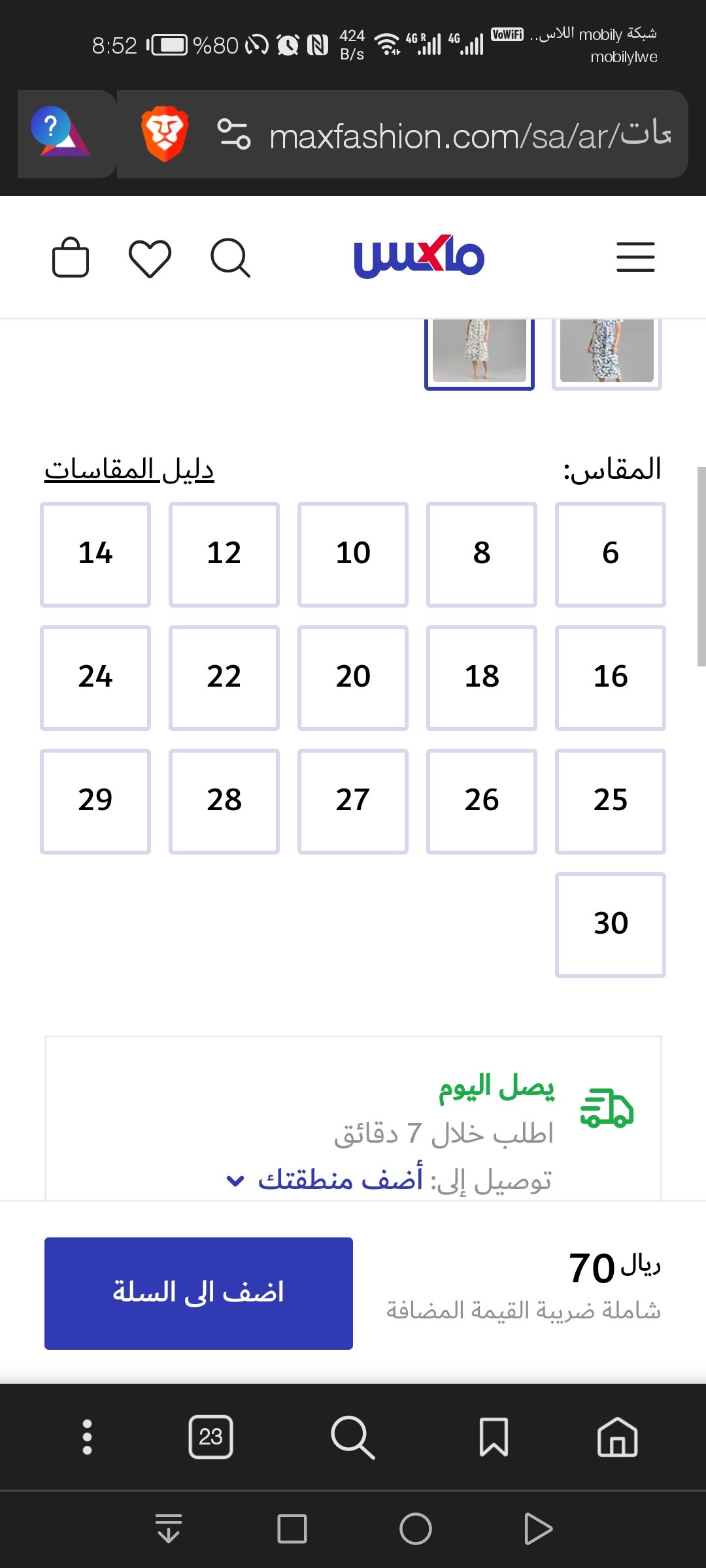 المقاسات المعروضة في الصورة : 12