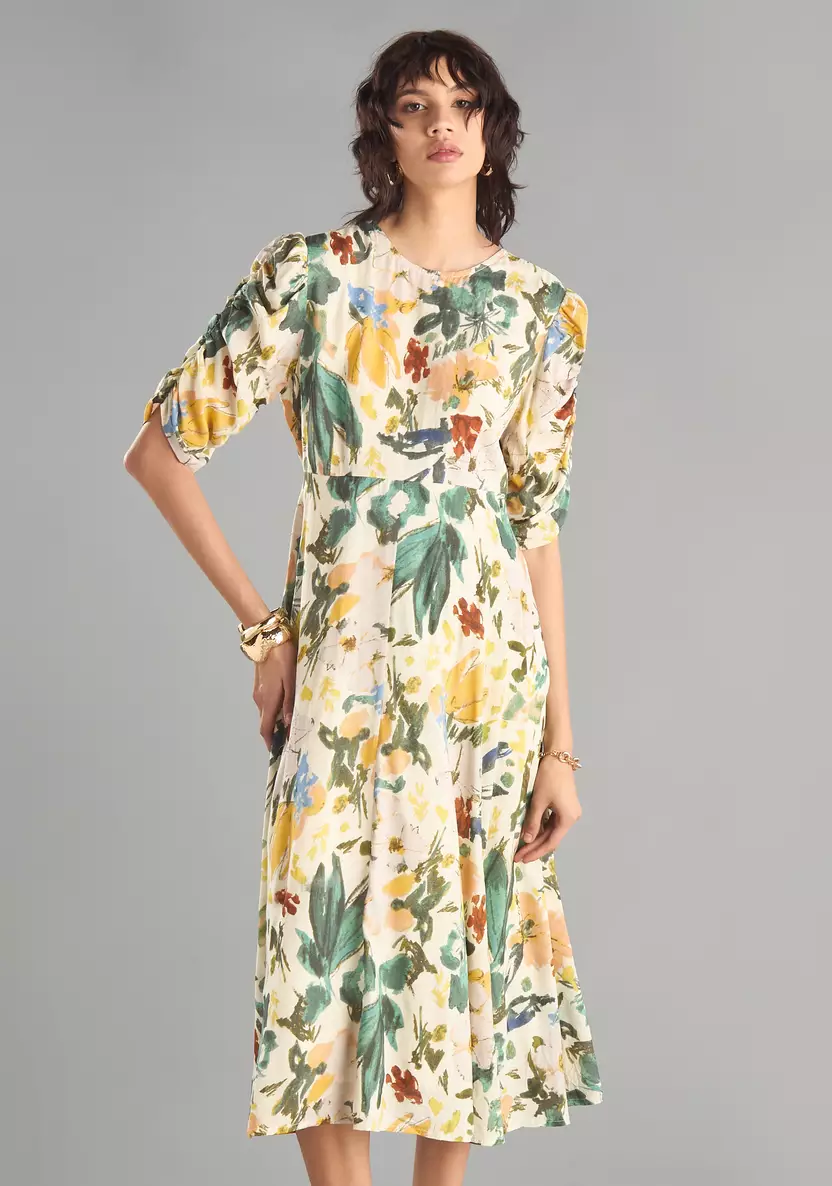 تالقي بإطلالة عصرية راقية بالحصول على هذا الفستان الرائع، يتميز بطبعات تجريدية نابضة بالحياة، التصميم الجذاب والقماش المريح يجعله مثاليًا للمناسبات غير الرسمية وشبه الرسمية، يمنحك مظهرًا ساحرًا، يضفي مزيدًا من السحر عليك.