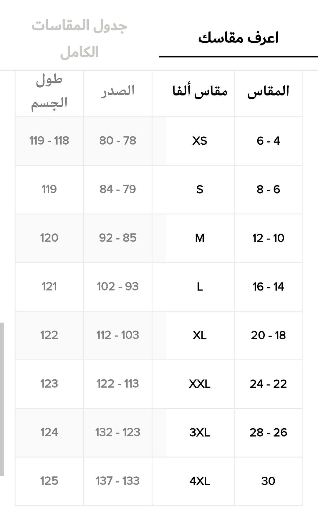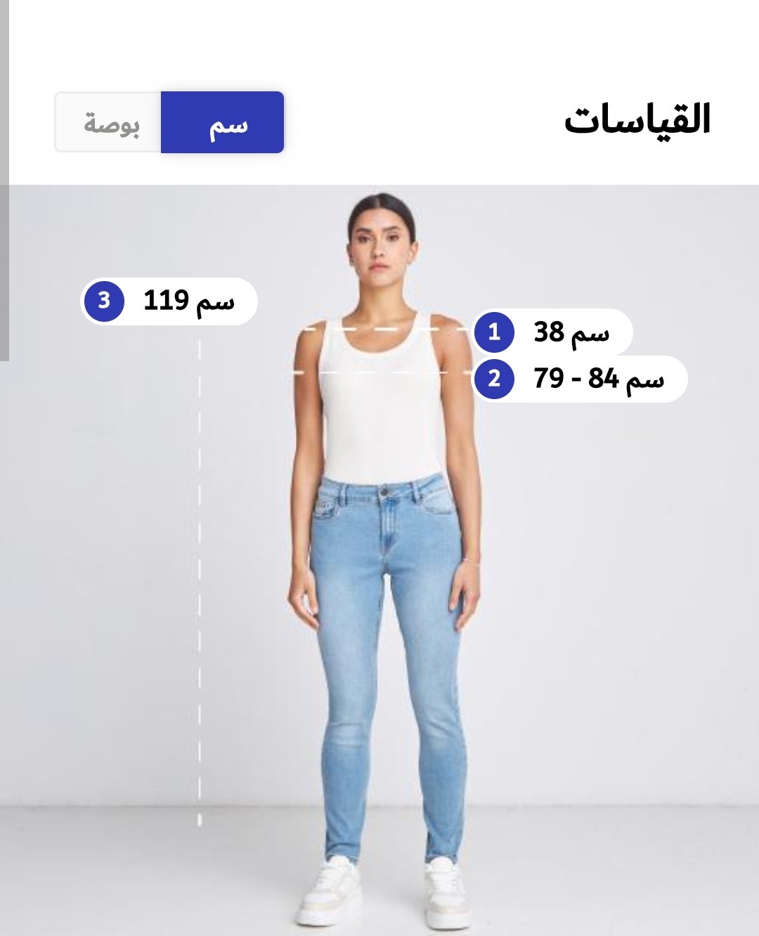 قياسات العارض/ العارضة : محيط الصدر 75 سم، الخصر 65 سم، الورك 88 سم، الارتفاع 181 سم
