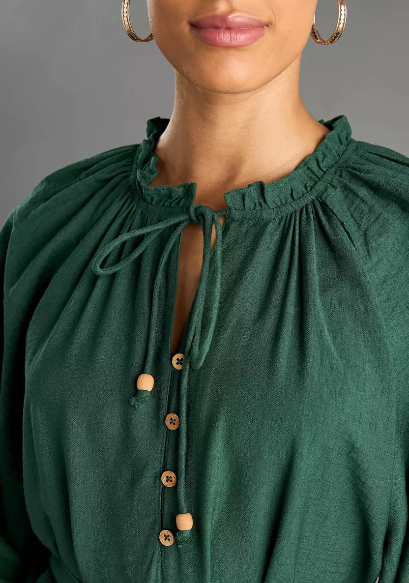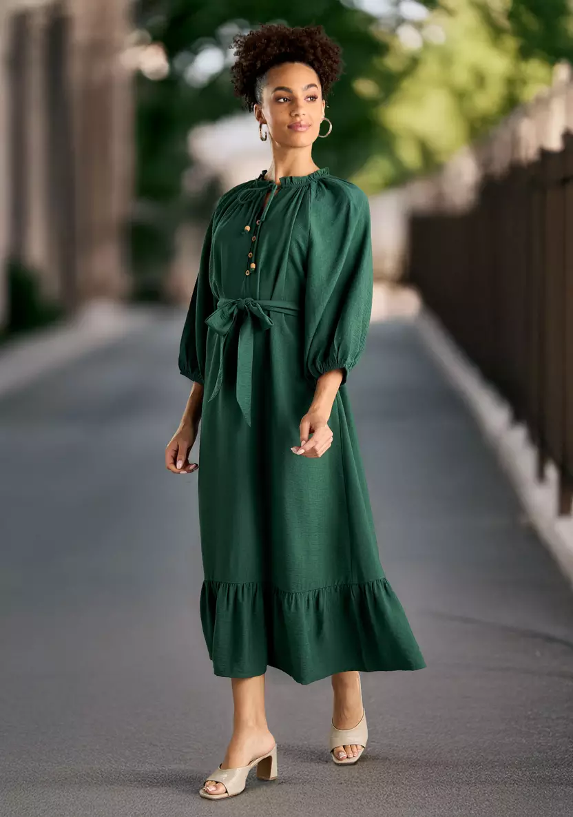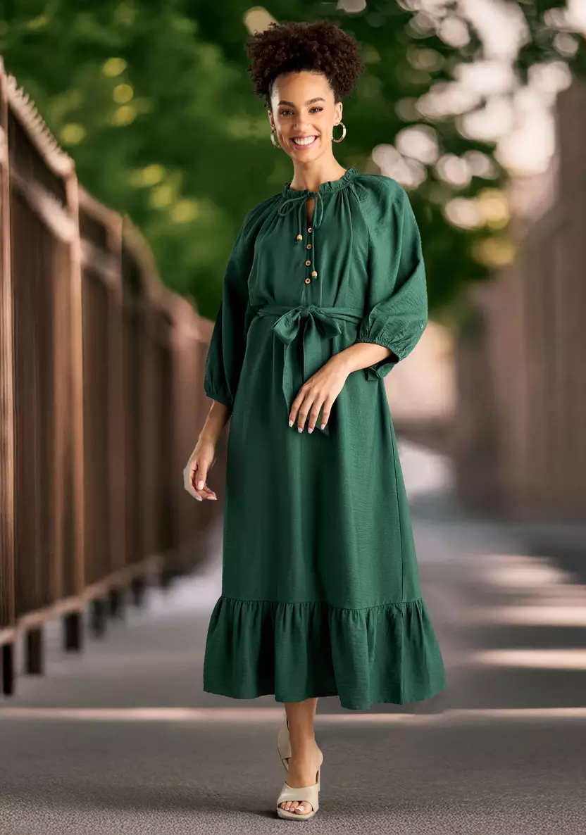 تمتعي بإطلالة أنثوية ناعمة بالحصول على هذا الفستان الراقي، مصمم بطول متوسط، وبأكمام 3/4 لمزيد من الجمال، مصنوعة من خامة الفيسكوز المسامي المريح، وينسدل بشكل جميل ويضمن الراحة طوال اليوم، بلون سادة وبرباط، ويلائم المناسبات الرسمية والغير رسمية.