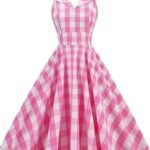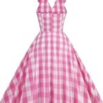 تصميم بدون ظهر برقبة برسن: فستان منقوش بحمالات للنساء من الخمسينيات من القرن الماضي، تصميمين. تصميم رقبة عميقة على شكل حرف V، فستان متأرجح منقوش مع حزام، يطيل رقبتك وخط خصرك، ويجعلك تبدين أكثر نحافة وطولًا. أحزمة برباط ذاتية الربط، قابلة للتعديل لملاءمة مريحة أفضل. تصميم ياقة مطوية بدون أكمام ورقبة على شكل حرف V ورقبة على شكل حرف V ودرزات واسعة عند محيط الخصر، يمكن أن يجعلك تبدين ناضجة وأنيقة بين الناس.