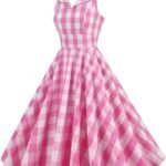 فستان منقوش بحمالات للنساء من خمسينيات القرن الماضي: فستان نسائي عتيق عتيق من الخمسينيات من القرن الماضي برقبة برباط بدون أكمام فستان حفلات منقوش بدون ظهر بطول الركبة متأرجح على شكل خط لحفلات الكوكتيل وحفلات الشاي وحفلات التخرج وحفلات الخمسينيات، فستان كلاسيكي كلاسيكي هيبورن 50s 60s.