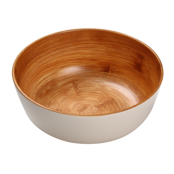 فيلي وعاء تقديم دائري مصنوع من الميلامين والخيزران أبيض وبني بقطر 15 سم وارتفاع 5.5 سم Y1K120121-PH051-B