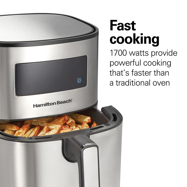 تمتع بالطهي الصحي والسهل مع قلاية هوائية هاميلتون بيتش الرقمية بقدرة 1700 واط. بفضل سعتها الكبيرة التي تبلغ 5.6 لتر، يمكنك إعداد وجبات صحية ولذيذة للعائلة بأكملها. تصميمها العصري بلون فضي ورمادي داكن يضفي لمسة أنيقة إلى مطبخك، بينما السلة غير اللاصقة تسهل عملية التنظيف.