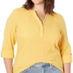 هذا القميص للنساء من تومي هيلفيجر هو قميص طويل الأكمام مع عروة ملفوفة، وخط رقبة على شكل حرف Y، من نسيج قطني مخطط.