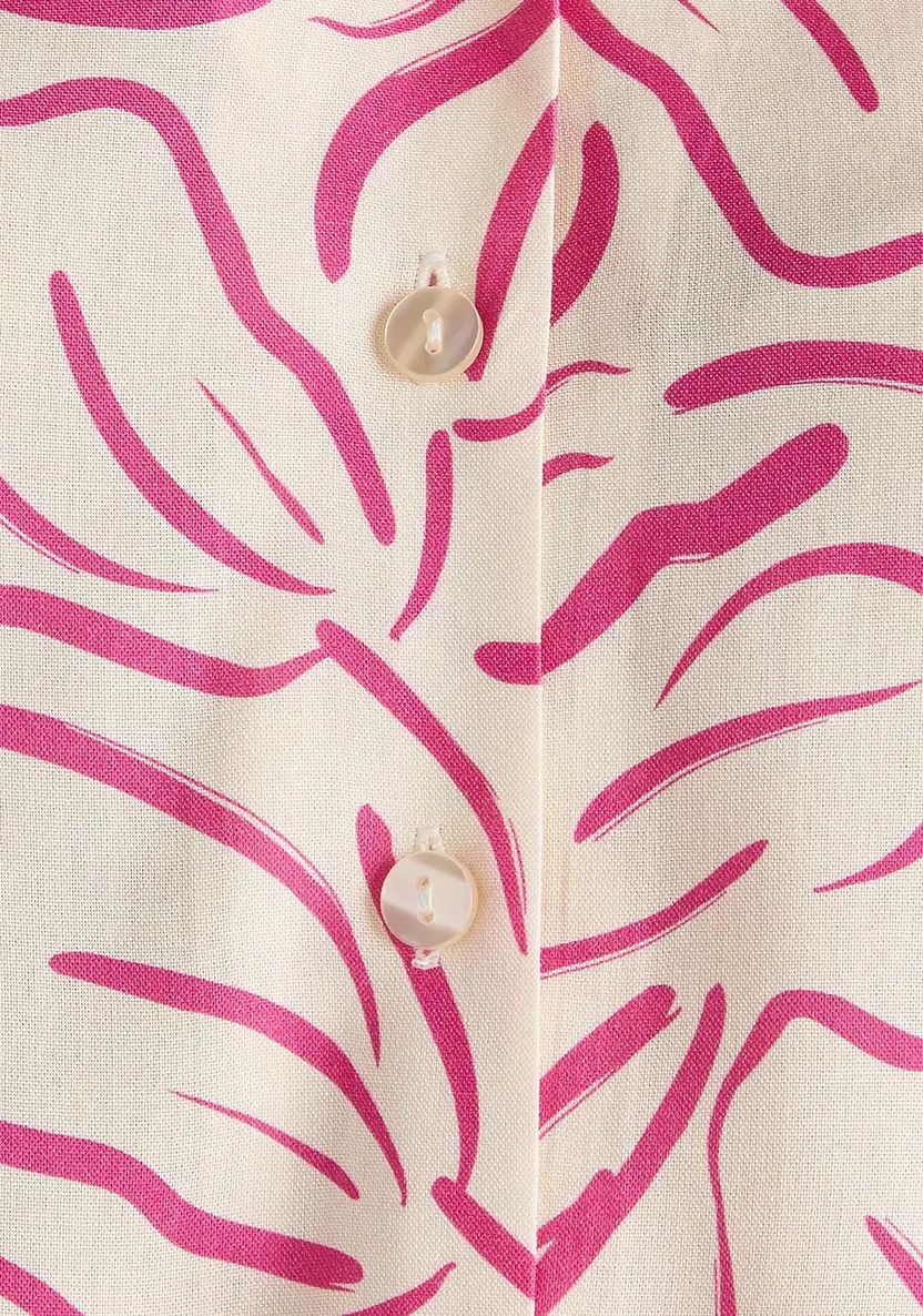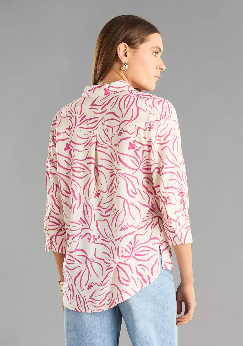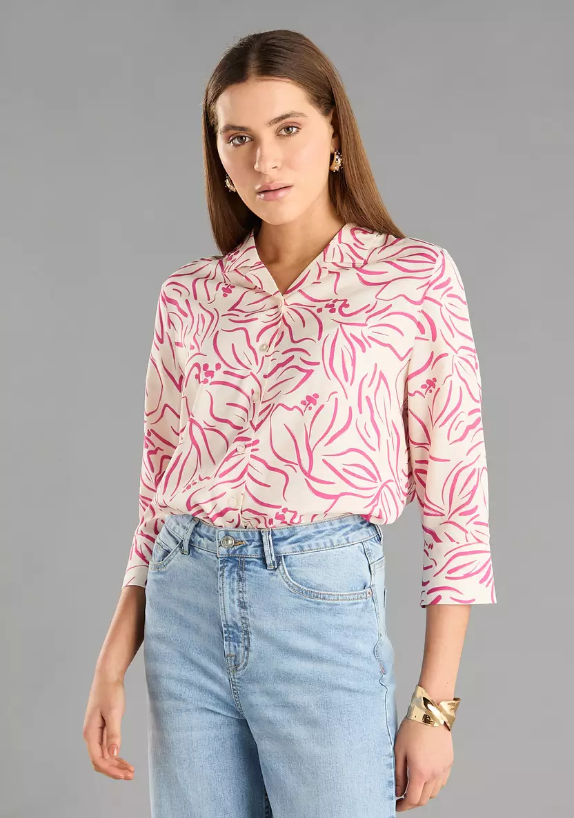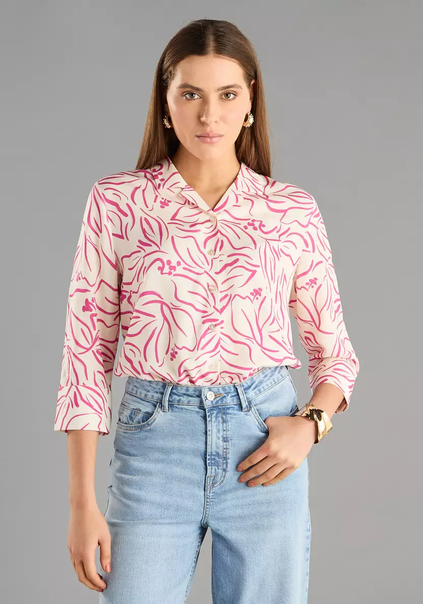 قميص فيسكوز بياقة كامب وأكمام 3/4 وطبعات