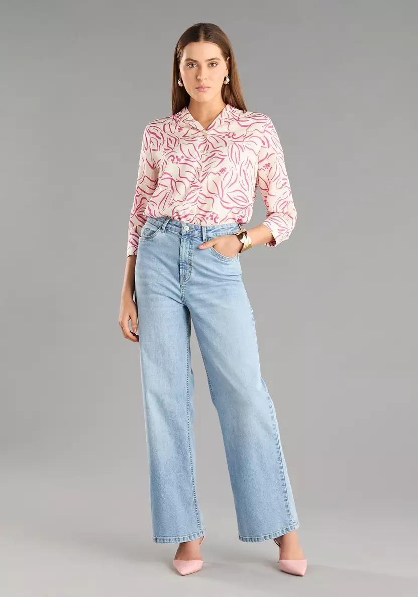 احصلي على إطلالة أنيقة باقتناء هذا القميص الرائع، مصمم بياقة كامب وأكمام 3/4 مريحة، وبطبعات رقيقة تعزز من أناقتك. مصنوع من خامات عالية الجودة وناعمة على البشرة، وسهل التنسيق مع بنطلون جينز أو تنورة لمظهر جذاب.