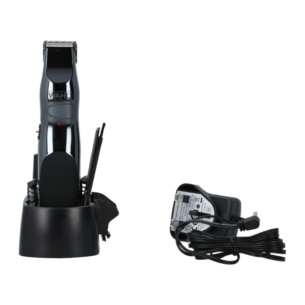 مزودة بكافة الملحقات اللازمة: مشط تثبيت قابل للتعديل، ثلاثة أمشاط تشذيب ضيقة، مشط شارب، حقيبة تخزين، فرشاة تنظيف، شاحن، وزيت الشفرات