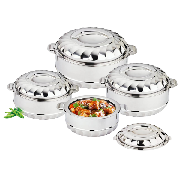 قم بتحديث طاولة السفرة الخاص بك مع طقم حافظ الطعام الفضي من بيان سيرفي. التصميم الفضي الأنيق يكمل أي ديكور للطاولة، في حين يضمن بناء الفولاذ المقاوم للصدأ المتانة. احتفظي بوجباتك دافئة لفترات أطول، مما يجعل كل مناسبة لتناول الطعام تجربة لذيذة.