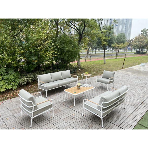 ارتقِ بمساحتك الخارجية مع مجموعة ليفينغ أكسنتس الفاخرة المكونة من 6 قطع، المصممة لتوفير الراحة والأناقة معًا. بفضل تصميمها الأنيق والمصنوع من الألومنيوم المتين، تتحمل هذه المجموعة جميع العوامل الجوية، مما يجعلها مثالية للفناء أو الحديقة أو بجانب المسبح. تتألف المجموعة من أريكة بثلاثة مقاعد، وأريكة بمقعدين، وكرسيين، وطاولة، وطاولة جانبية، مما يوفر لك مكانًا مثالياً للاسترخاء والترفيه.