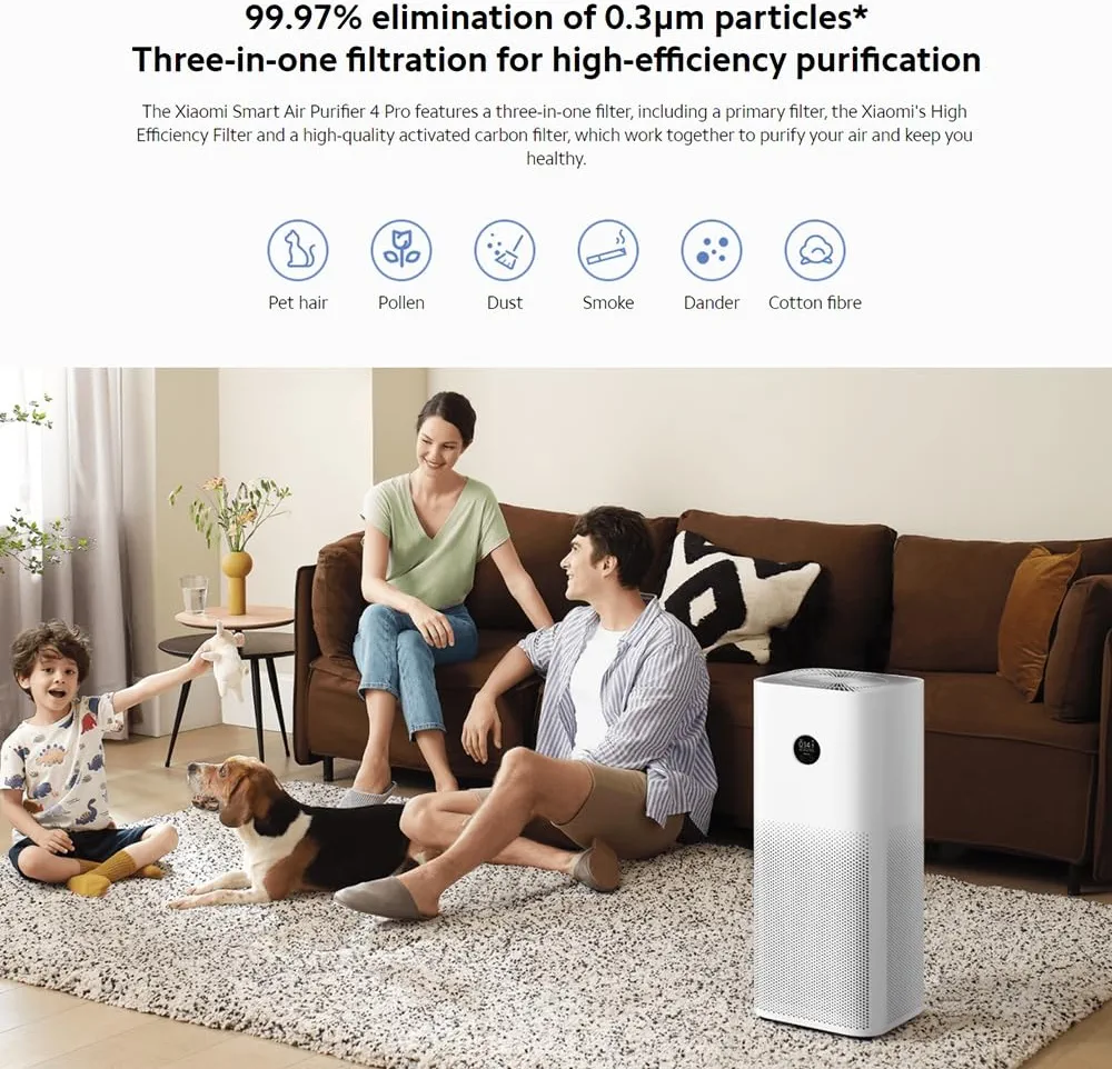 منقي الهواء الذكي 4 من شاومي يعمل بتطبيق خارجي او بالتحكم الصوتي، اصدار العالمي مناسب للغرف الكبيرة، بمعدل توصيل هواء نقي 400 متر مكعب/ساعة، شاشة لمس OLED – تطبيق مي هوم المتوافق مع اليكسا – ابيض