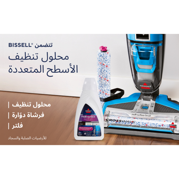 الآن يمكنك تنظيف جميع أنواع الأرضيات والسجاد بمنتهى السهولة مع مُكنسة بيسيل كروس ويف متعددة الأسطح. تعمل هذه المكنسة بتقنية 3 في 1 لتكنس، تغسل، وتجفف في نفس الوقت، مما يجعلها مثالية للأرضيات الصلبة والسجاد. بفضل تصميمها المتعدد الاستخدامات ومكافحة الأوساخ الرطبة والجافة، تقدم لك نتائج تنظيف مذهلة. تمتاز بفرشاة فريدة ولوح تحكم رقمي يساعدك على تعديل الإعدادات بلمسة واحدة. استمتع بتنظيف فعال وسهل مع مُكنسة بيسيل كروس ويف.